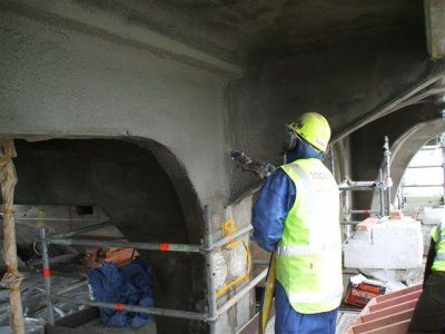 This product is applied through cement pumps to protect and strengthen the existing concrete structure. The application included work from scaffold cherry pickers, abseiling and mobile platforms, with crews working day and night shifts.